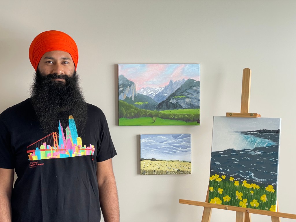 I like painting nature, especially landscapes from my travels, using primarily acrylics. More recently, I’ve ventured beyond exploring other subjects: people, clothing, and architecture.